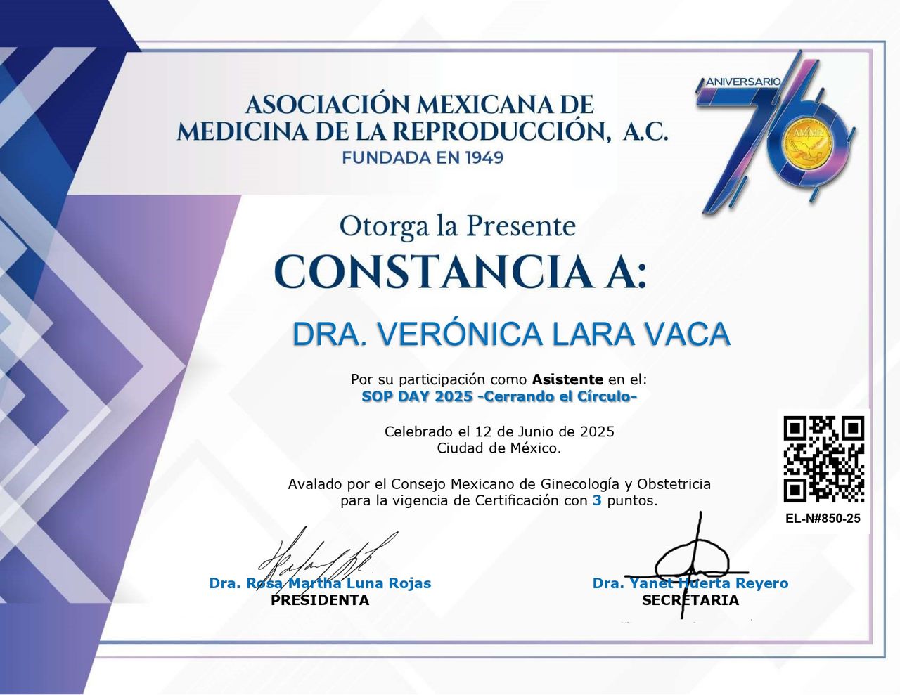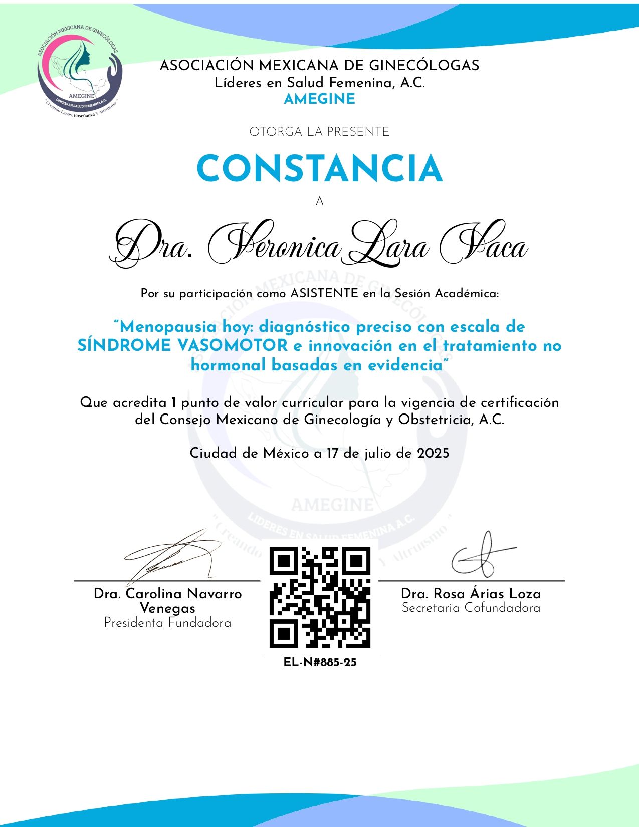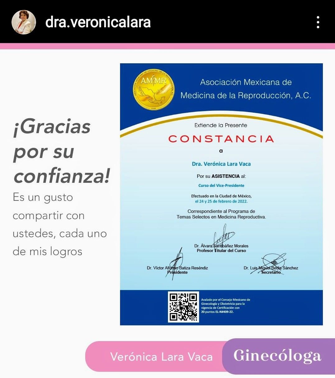- Certificada por el Colegio de Ginecología y Obstetricia