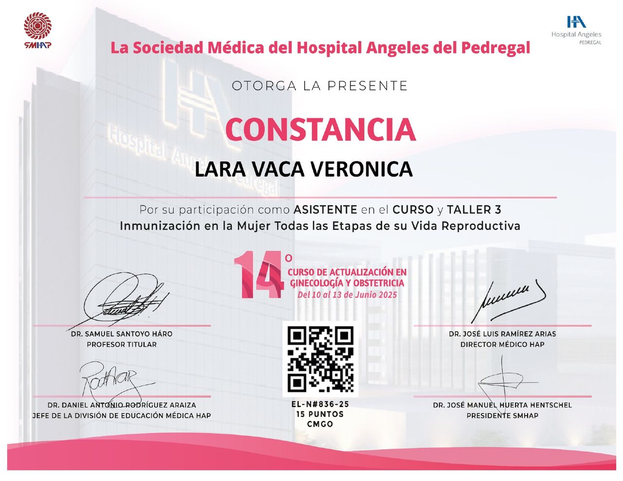 - Miembro titular del Colegio Mexicano de Ginecología y Obstetricia
