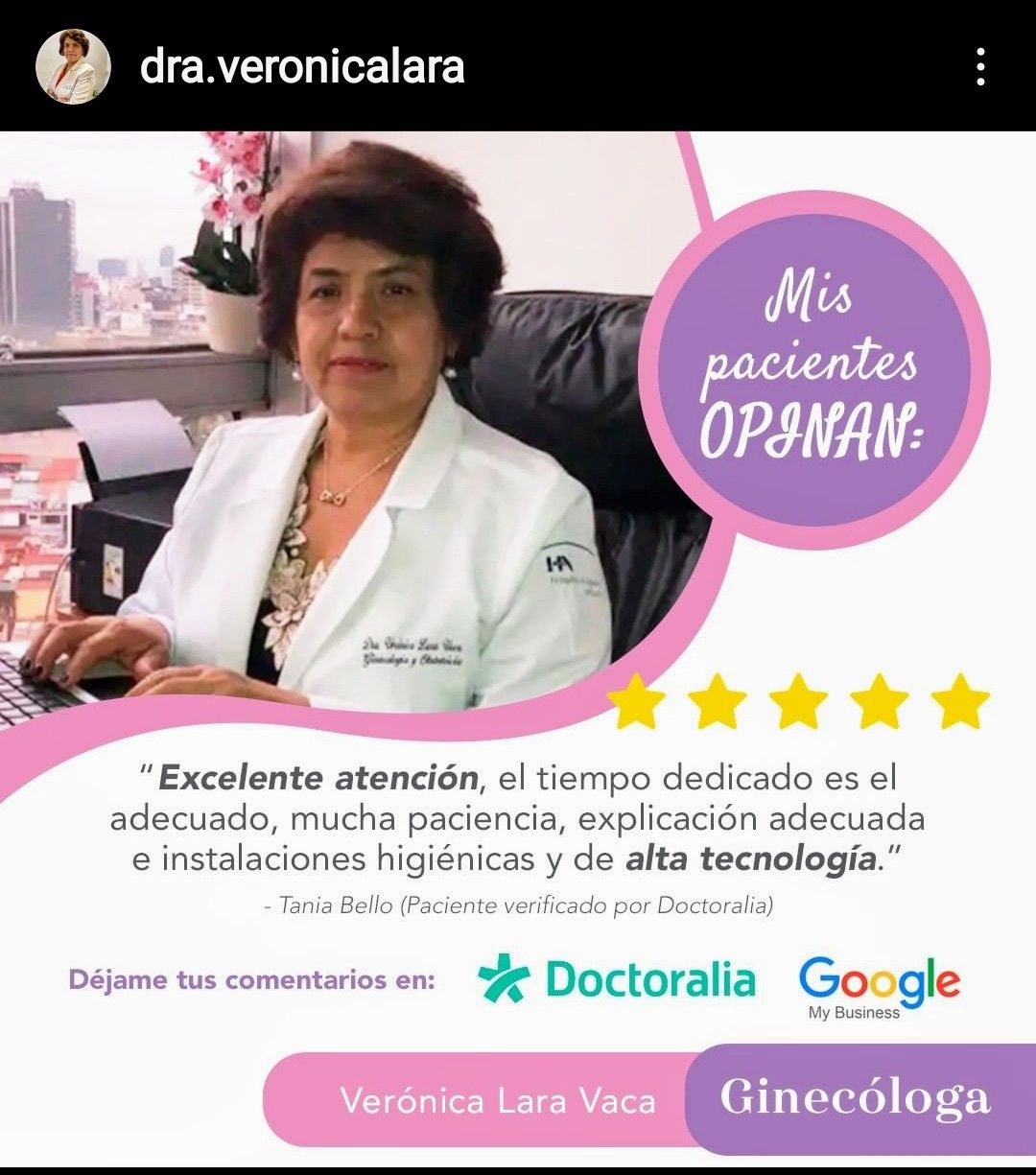 La Dra. Verónica ah sido mi ginecóloga durante más de 7 años; como siempre muy amable, profesional, da seguimiento no solo a lo médico sino también en la parte emocional y trato humano. Gracias como siempre por cuidar mi salud, un placer!